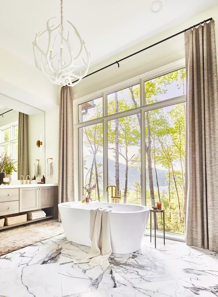 With a setting like this, the builder knew they would be remiss not to take full advantage of the incredible views. The Blue Ridge Mountains can be enjoyed from nearly every room—even the primary bath, where you can unwind in the bathtub while soaking in the scenery.